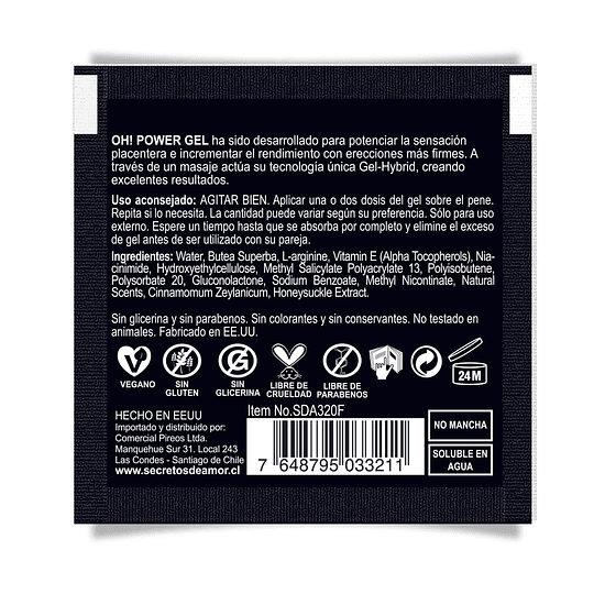Es un gel de acción rápida que produce una sensación de mayor turgencia de la erección y maximiza la satisfacción pues aumenta la sensibilidad